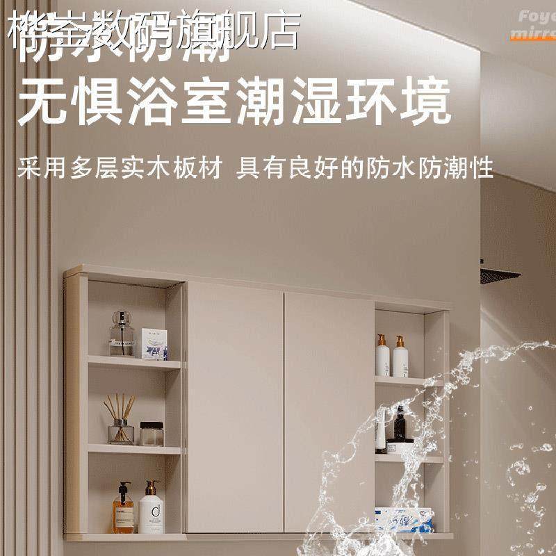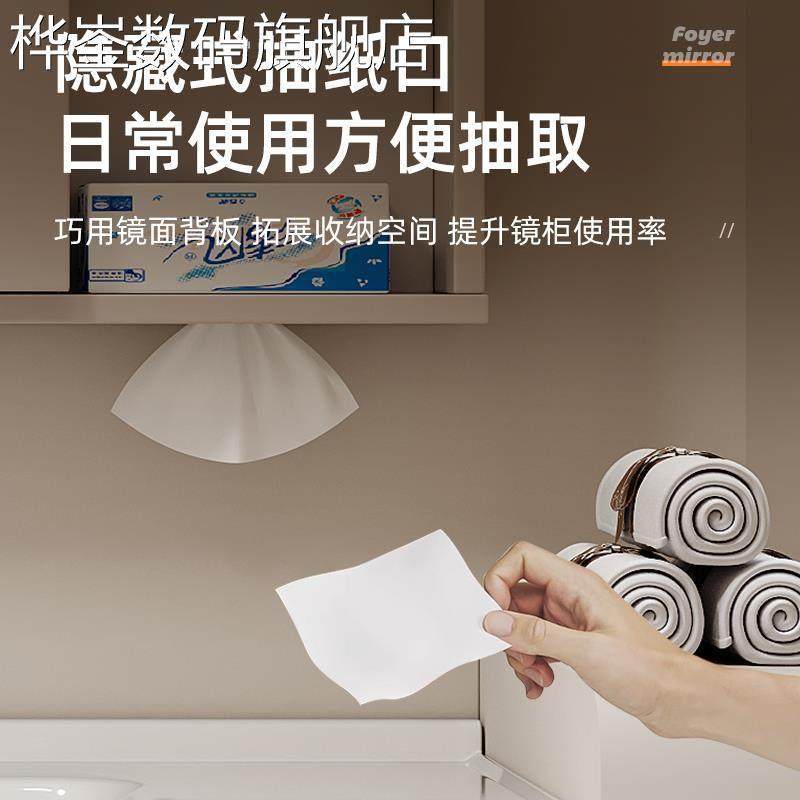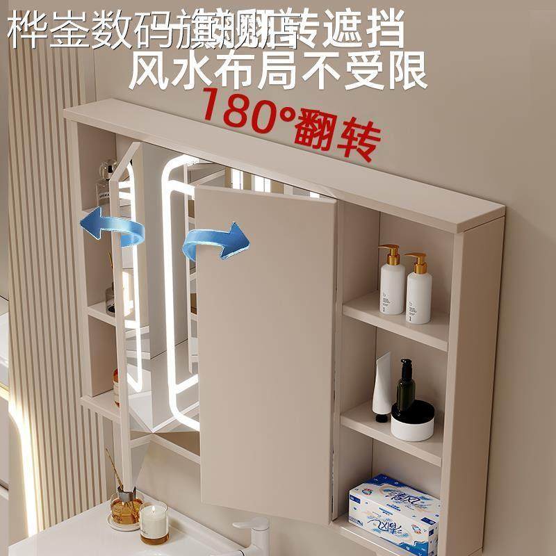 麦比梵奶油风智能洗漱台隐藏镜柜现代简约卫生间风水镜柜浴室柜折叠镜柜摆件饰品垫垫床笠拉车