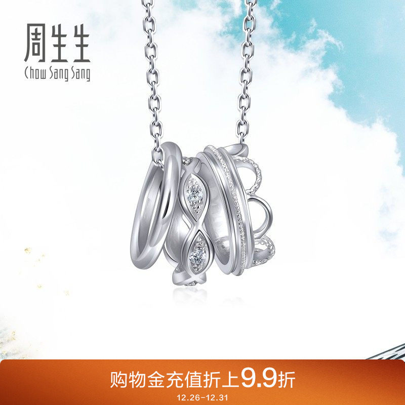 周生生Pt950铂金Daily Luxe圆环钻石项链套链92325U