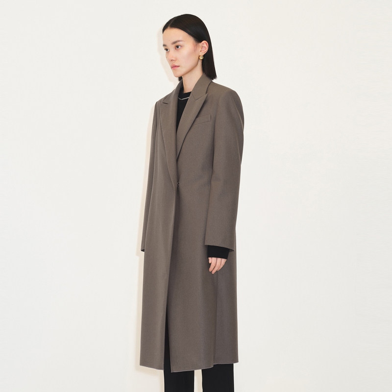 LESS秋季绵羊毛大衣女复古西装领长款毛呢外套2M9811990