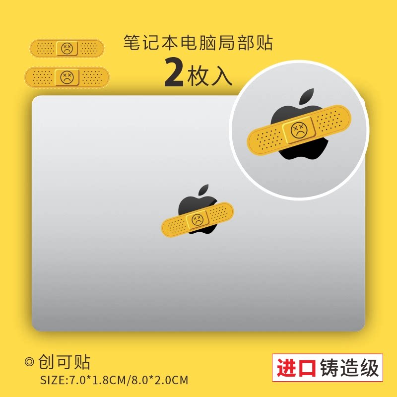 艺贴进口铸造级带导气槽易定位技术 创可贴 笔记本电脑适用macbook外壳划痕遮瑕创意贴纸防水不留胶 一份2枚