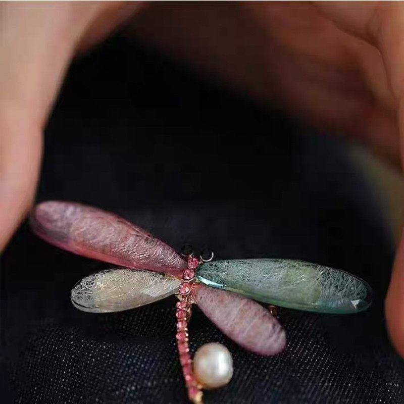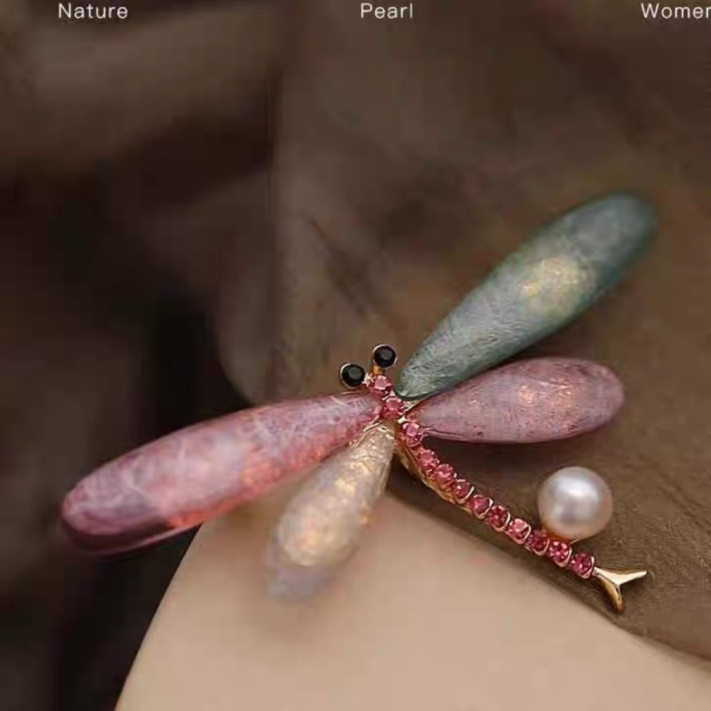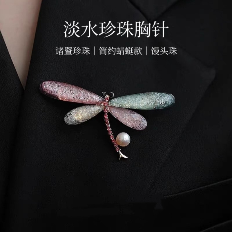 诸暨淡水珍珠简约蜻蜓胸针小香风高档轻奢胸花毛衣衬衫防走光别针