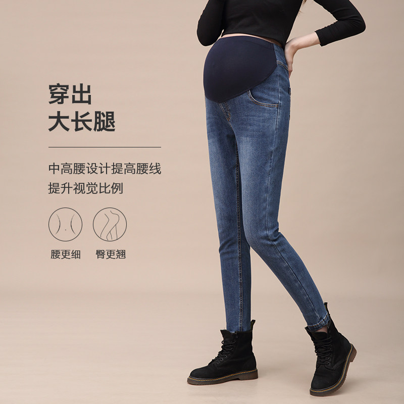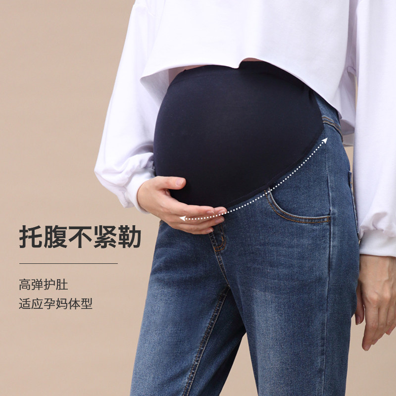 婧麒孕妇小脚牛仔裤春季外穿不勒肚子直筒裤孕期大码托腹烟管长裤