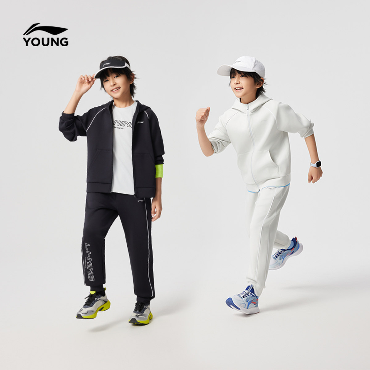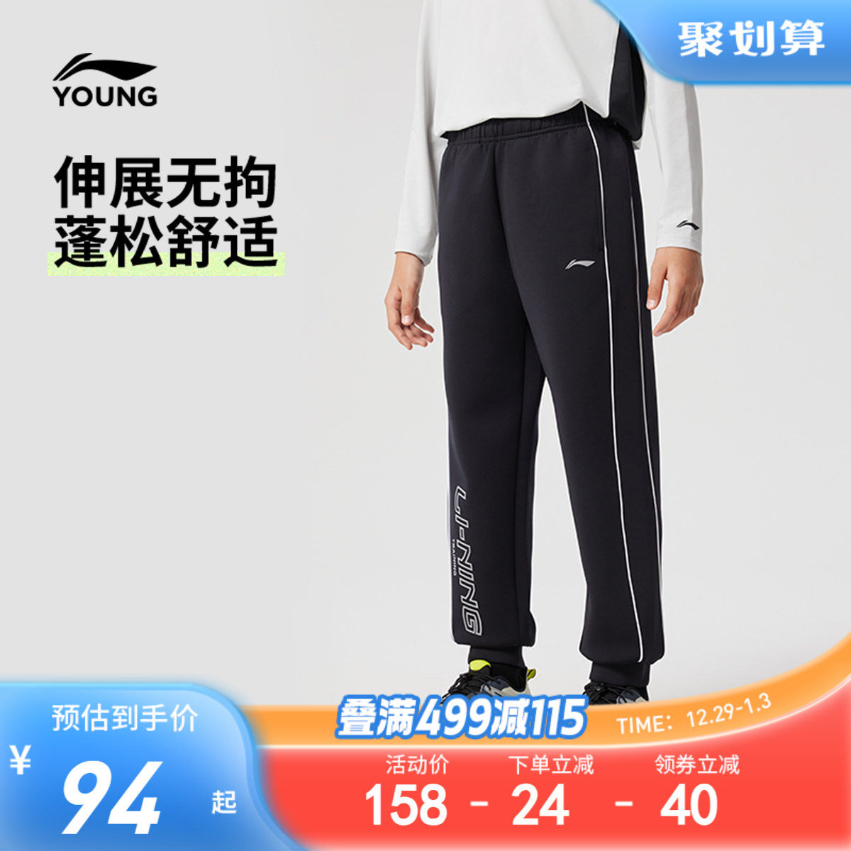 李宁儿童宽松针织弹力裤运动裤2025新款秋冬款男童装女中大童裤子