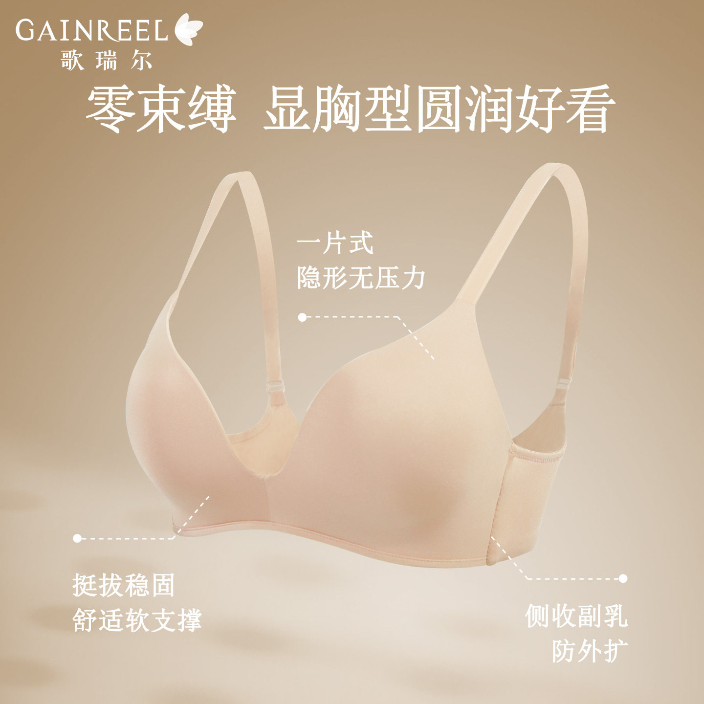 歌瑞尔无痕文胸内衣女法式无钢圈薄款隐形裸感透气轻运动美背