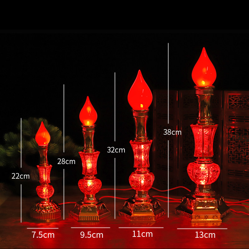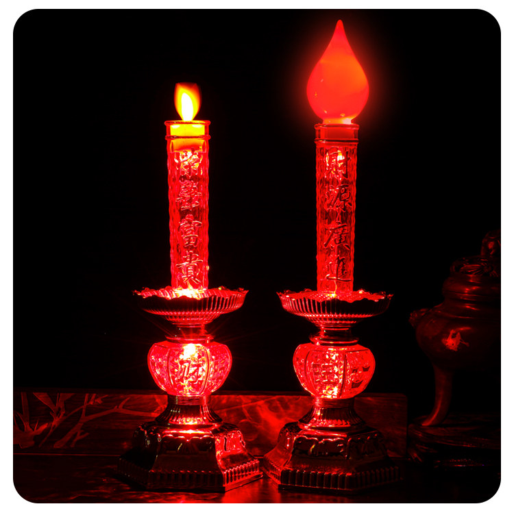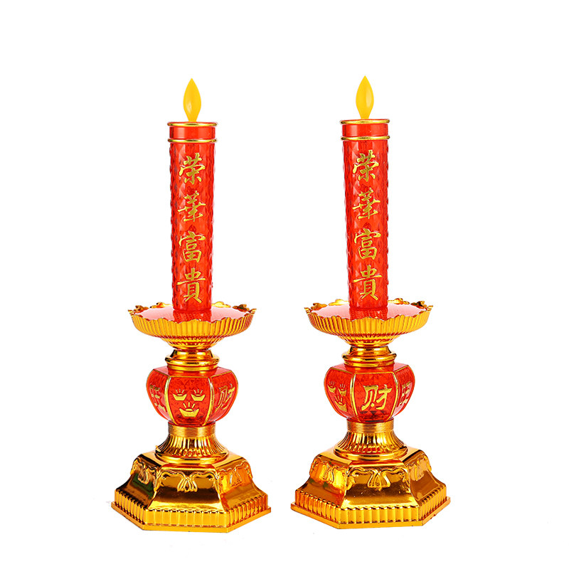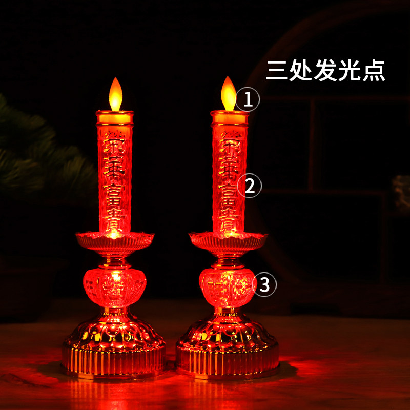 电子蜡烛灯家用led无烟烛台室内财神灯佛龛摆烛一对仿真火焰电池