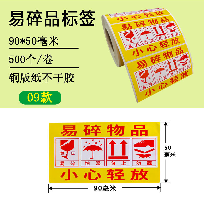光码易碎品标签此面向上禁止倒置精密仪器勿摔勿压玻璃制品怕雨防潮外包装快递包裹温馨提示贴定制不干胶包邮