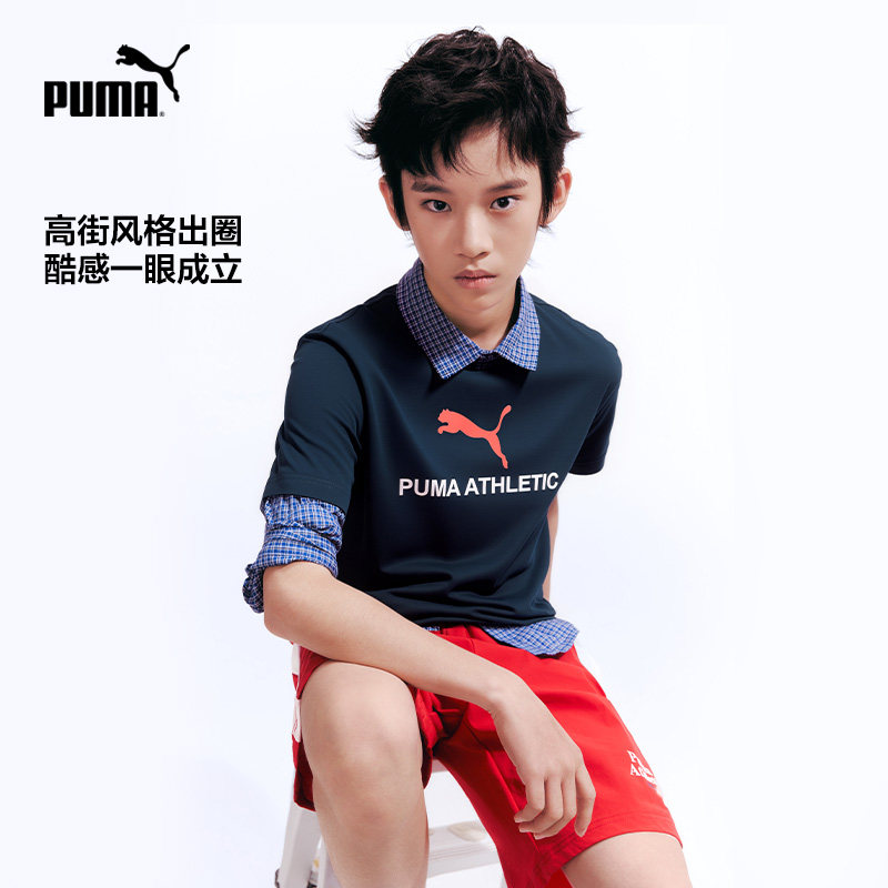 PUMA彪马童装儿童男童吸湿T恤大童衣服速干短袖运动宽松圆领百补