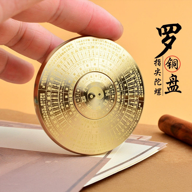 纯黄铜实心八卦罗盘太极旋转复古指南针便携随身减压把玩指尖陀螺