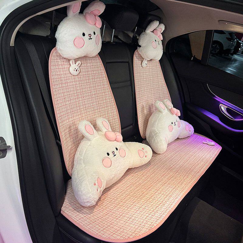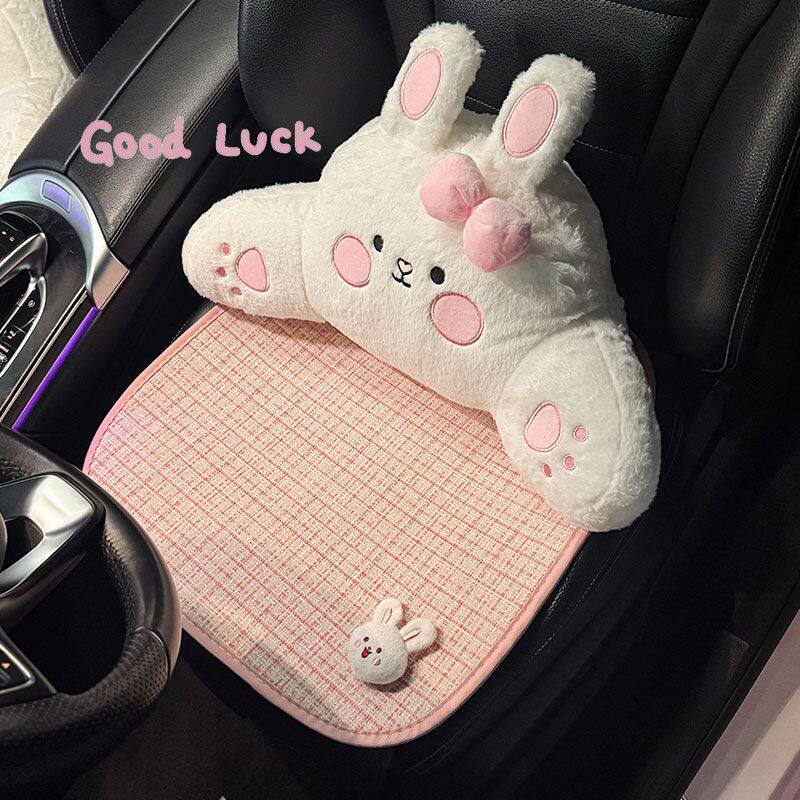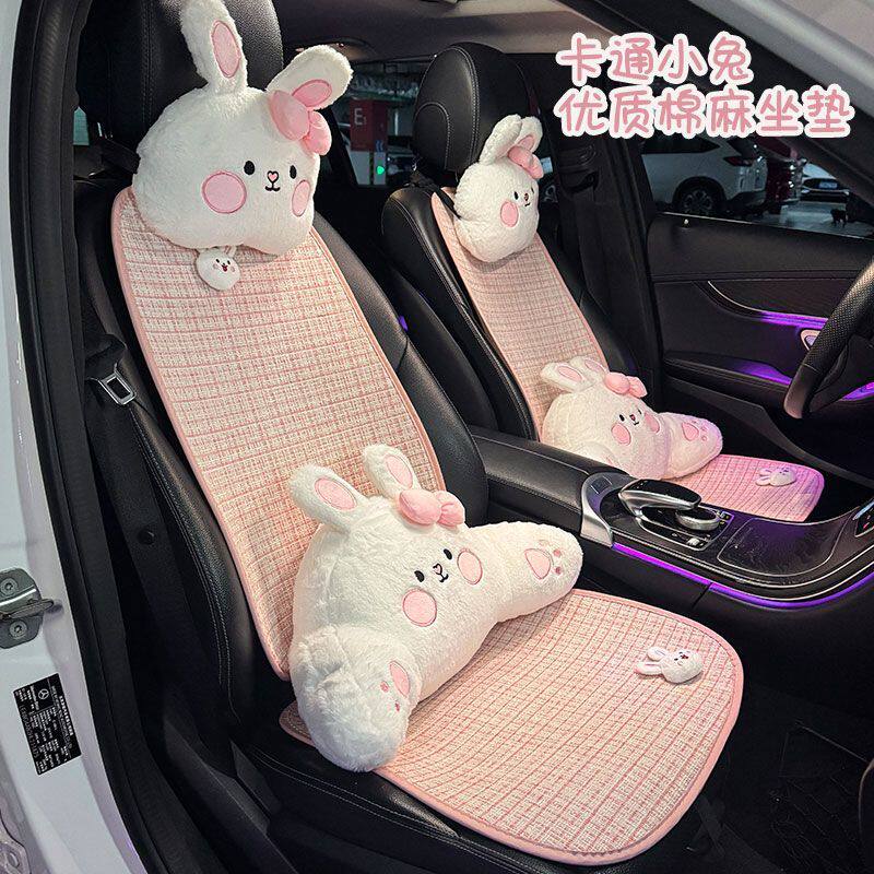 网红可爱小兔夏季汽车坐垫透气棉麻舒适座垫卡通四季通用车载坐垫