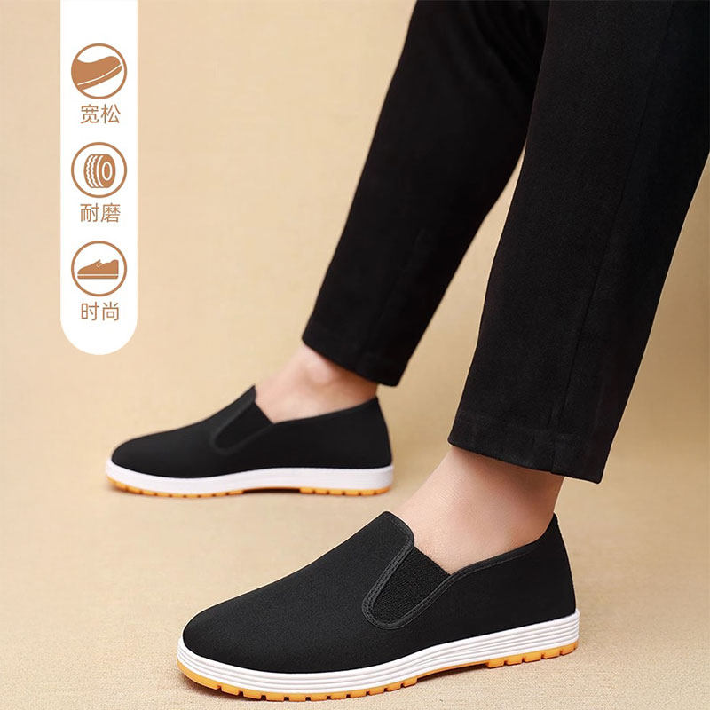 春秋季老北京布鞋男士一脚蹬透气防滑工作休闲开车特大码全黑布鞋