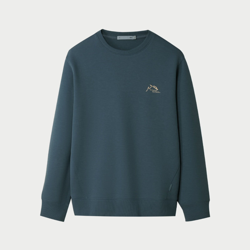 HLA/海澜之家山不在高系列卫衣2025春秋款圆领珠地小标宽松上衣男