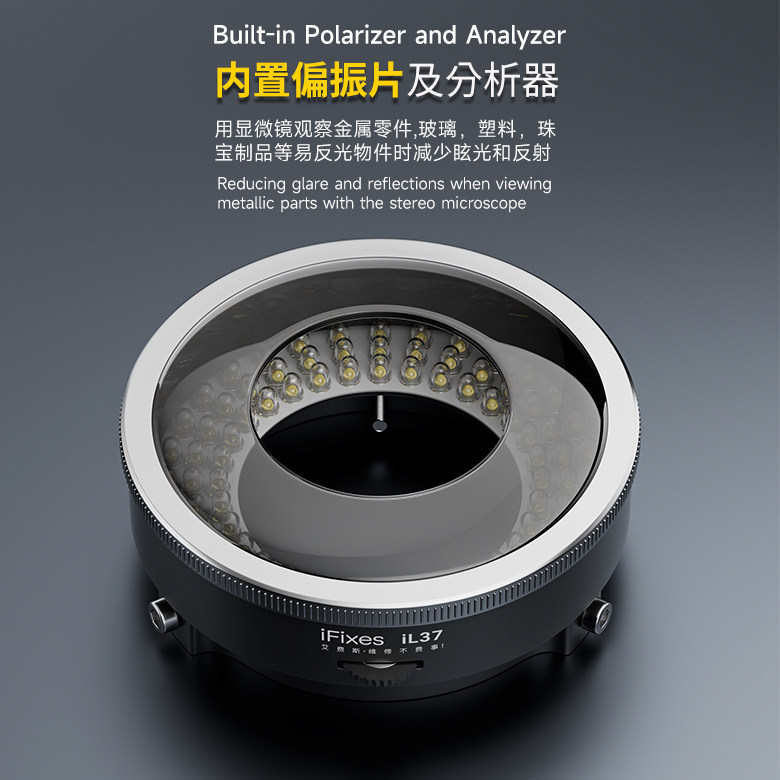 iFixes 显微镜偏振偏正偏光环形灯 96 LED灯珠可调光源带偏振镜片