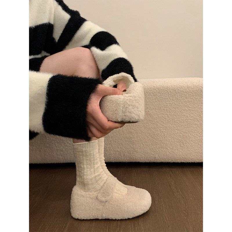巨好看厚底内增高勃肯鞋毛毛鞋女2025新款冬季加绒玛丽珍棉鞋单鞋