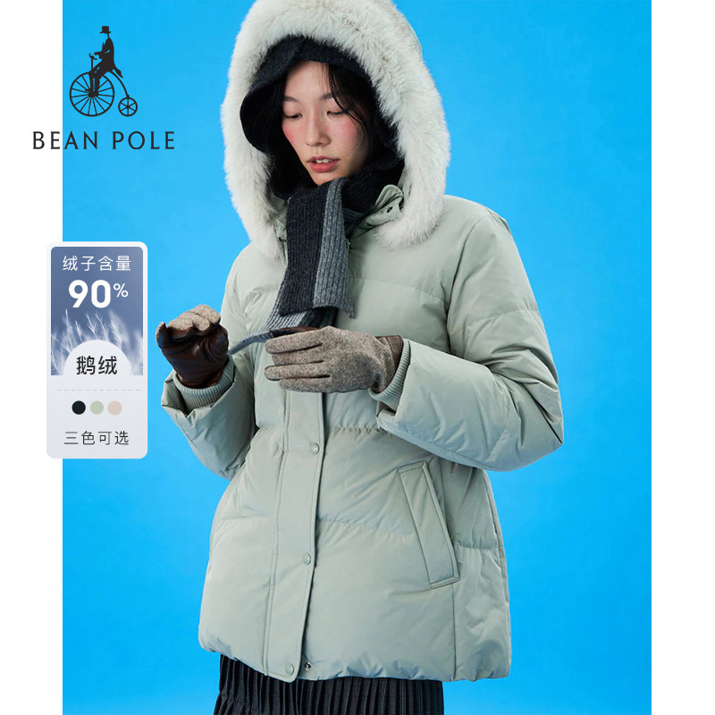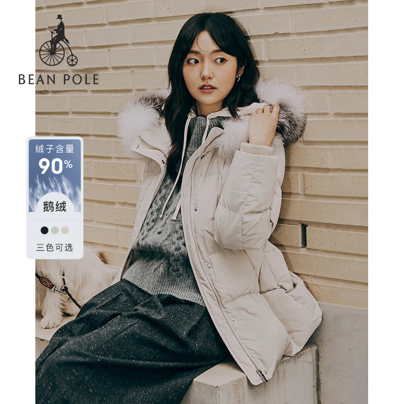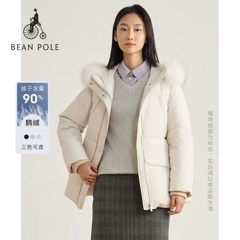 90%鹅绒 BEANPOLE滨波女士简约通勤优雅收腰时尚可拆卸毛领羽绒服