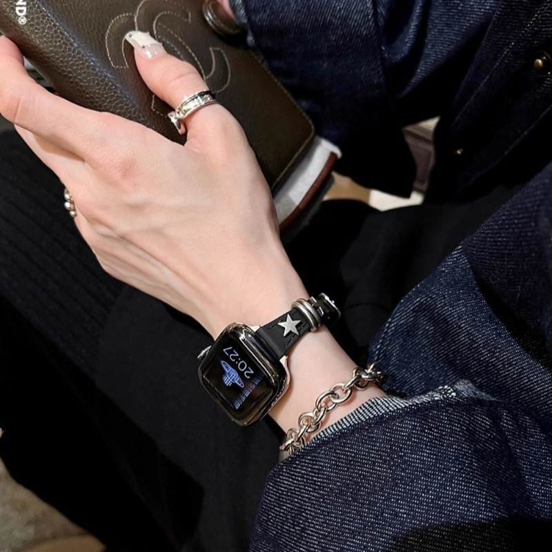适用苹果手表s11表带细版铆钉星星10小众女款赛博朋克9/8/7iWatch6/5/4百搭创意金属硅胶表壳智能运动配件