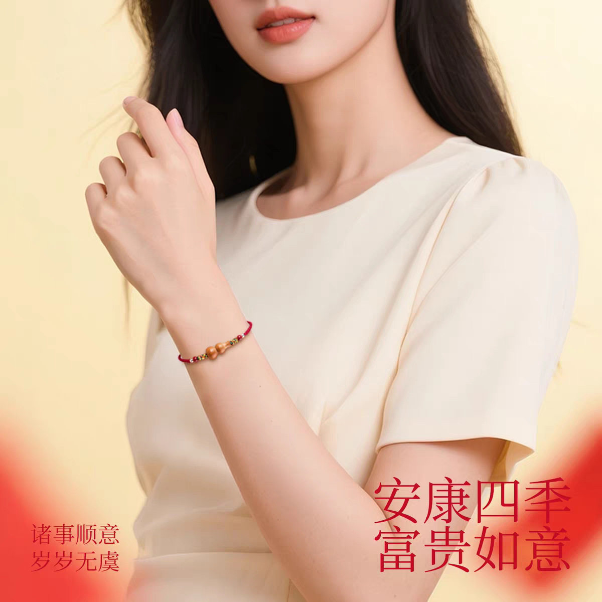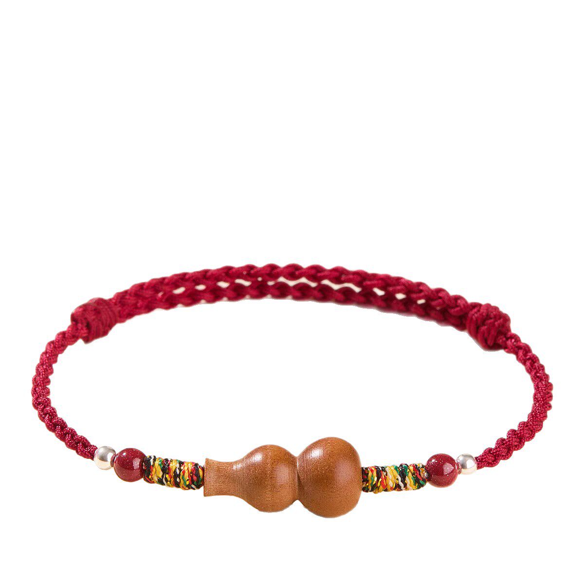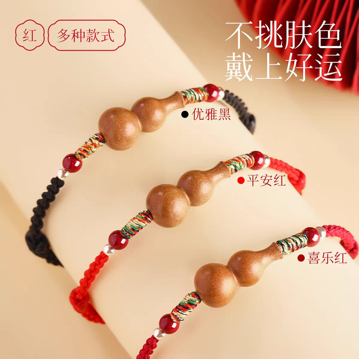 葫芦手链本命年红手绳木质饰品平安红绳脚链编织天然老桃木手串女