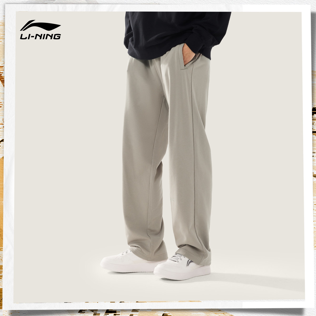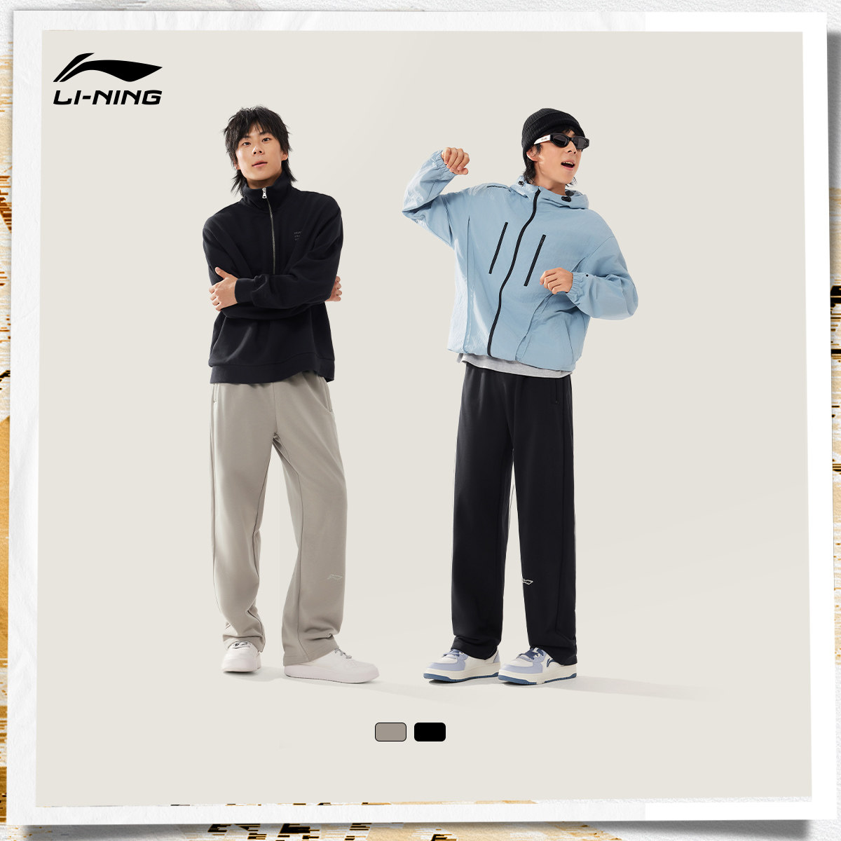 李宁卫裤男士冬季宽松黑色裤子直筒休闲裤加绒跑步裤针织运动裤男