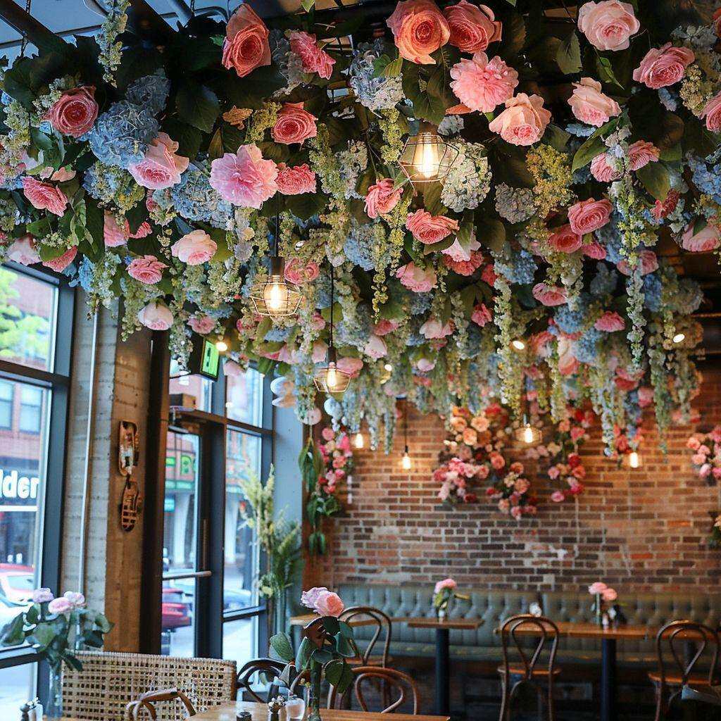 仿真绿植天花板吊顶室内软装造景假花网红顶部假植物装饰莫奈花艺