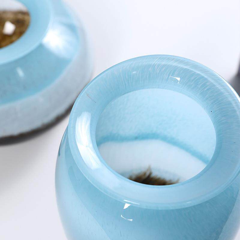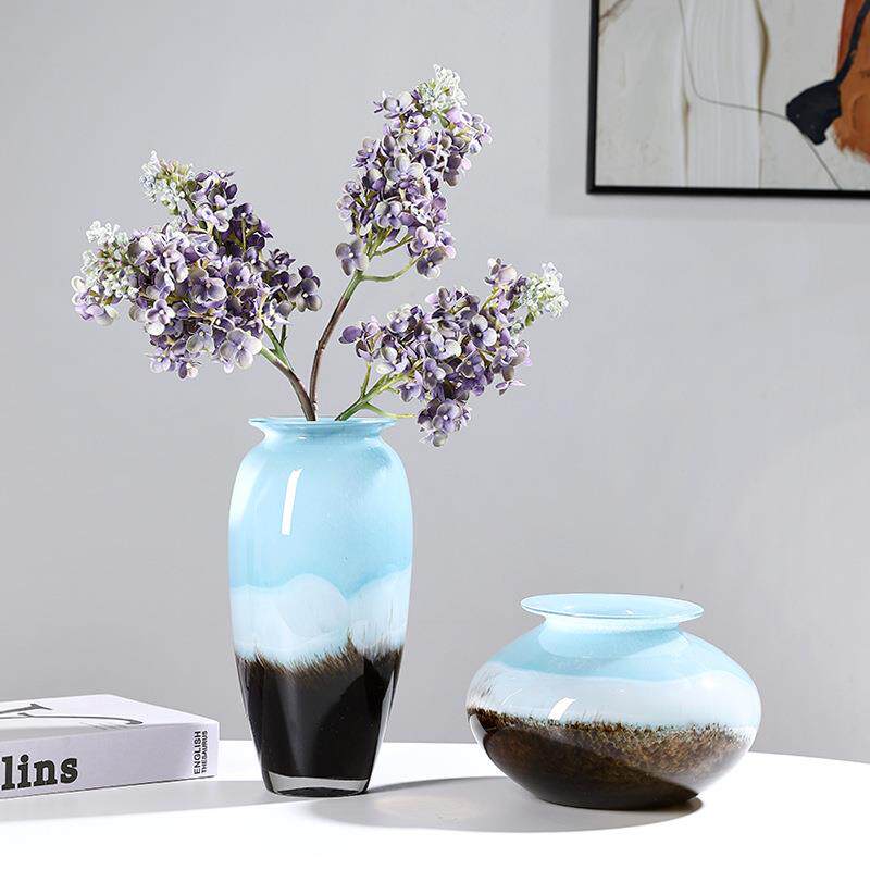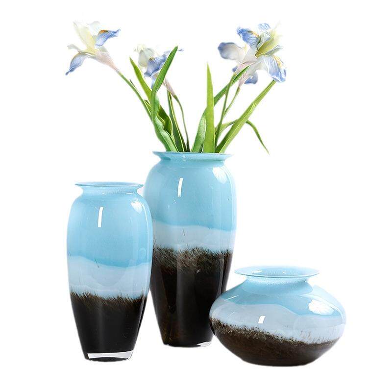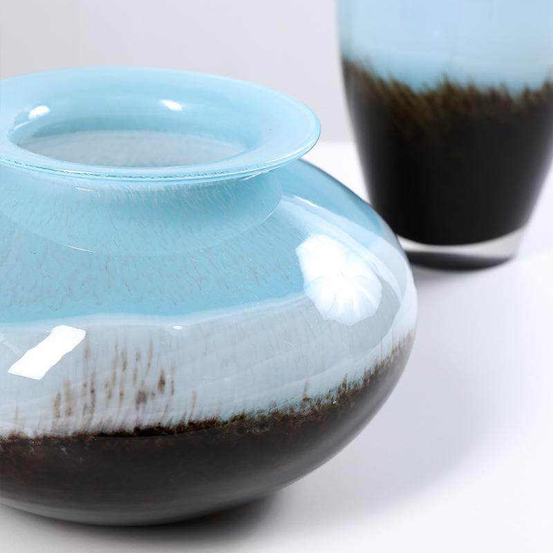 蓝白黑混彩条纹渐变玻璃花瓶摆件高档家居样板间软装饰品花器摆件