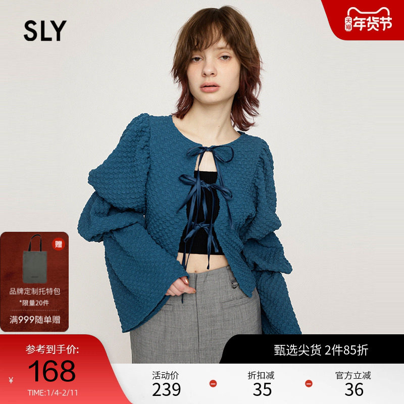 SLY 甜美蝴蝶结提花前后两穿针织开衫030HSY80-1030