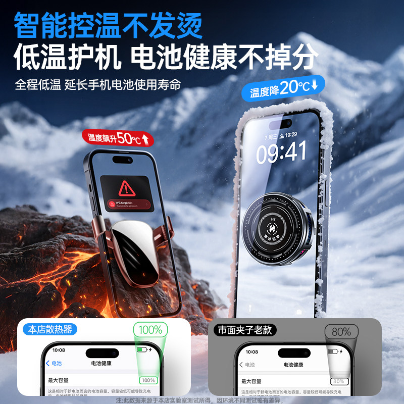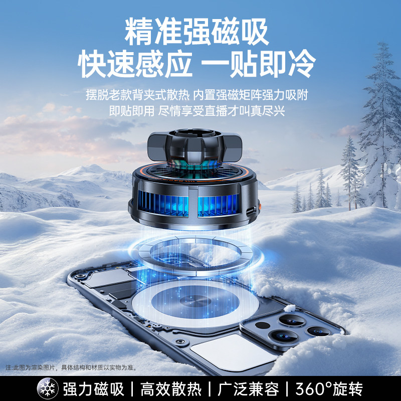 [真结冰]手机散热器半导体制冷降温神器主播直播电竞游戏汽车车载导航通用磁吸冰封大功率背夹扇适用苹果安卓