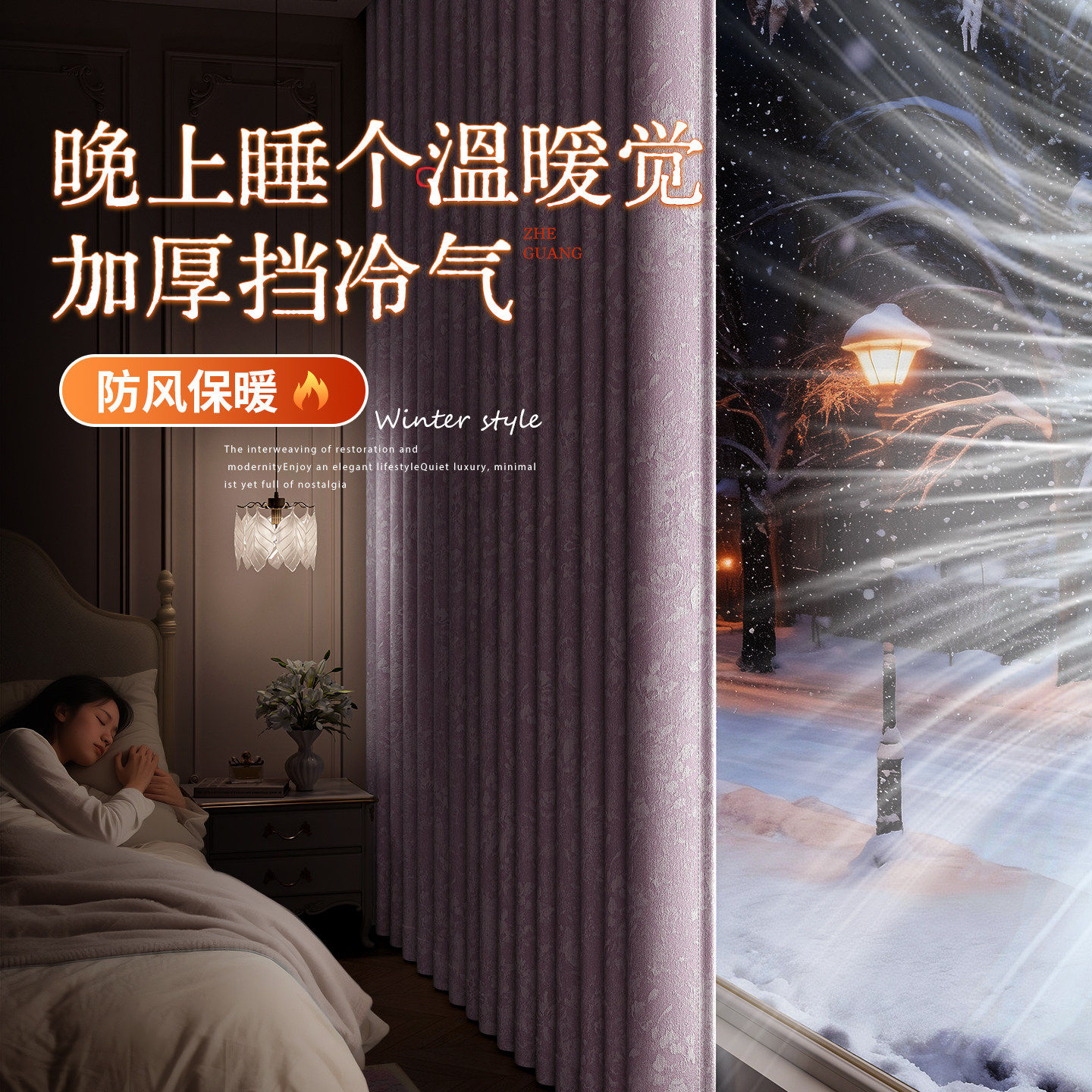 北方冬季防风保暖窗帘遮光卧室加厚挡风防寒提花雪尼尔2026新款