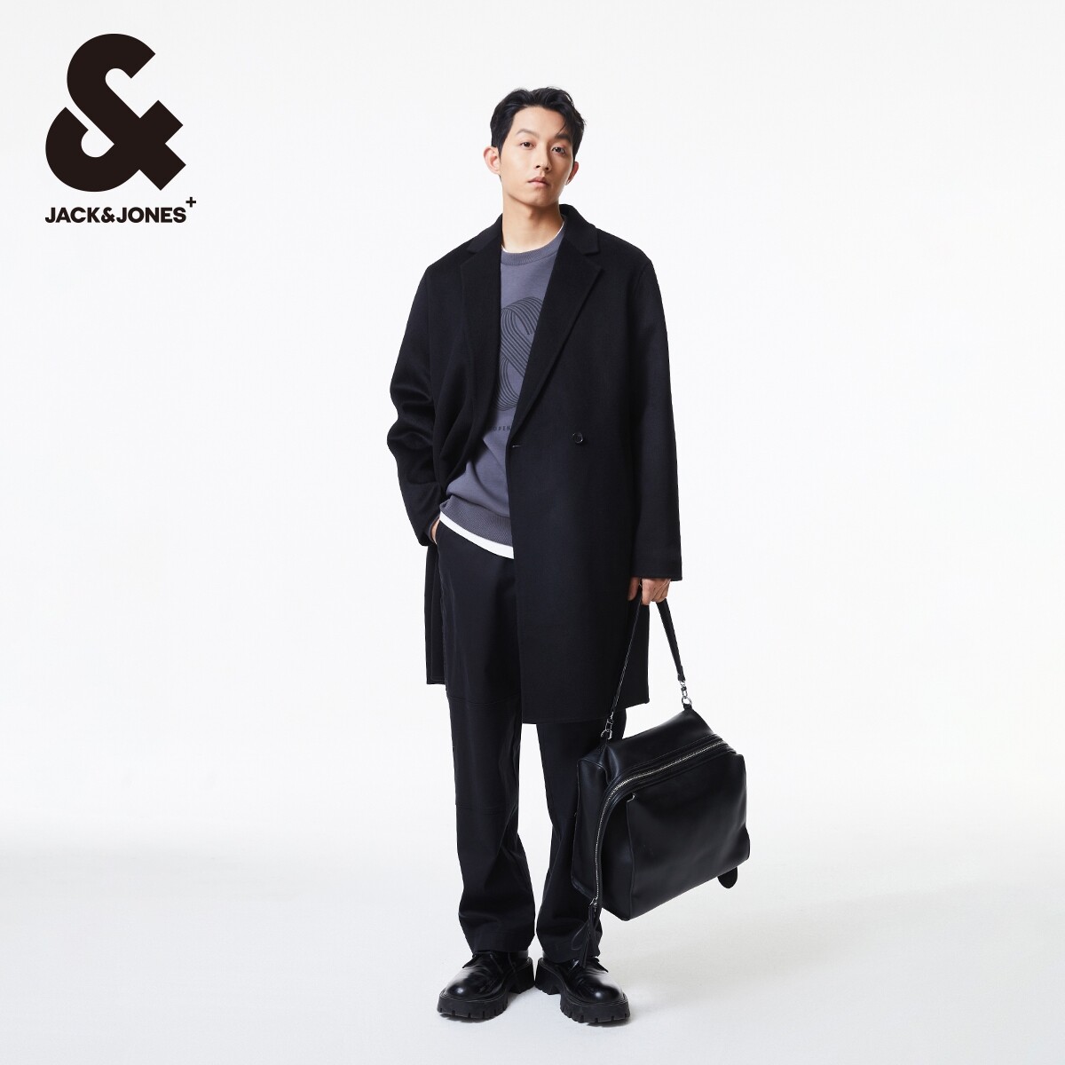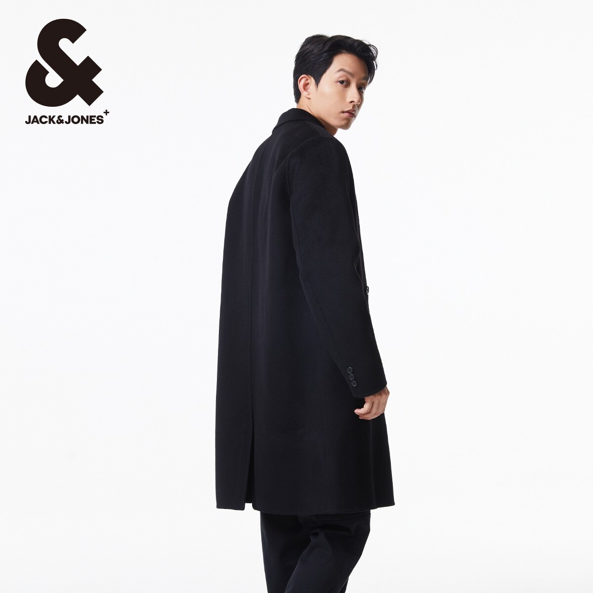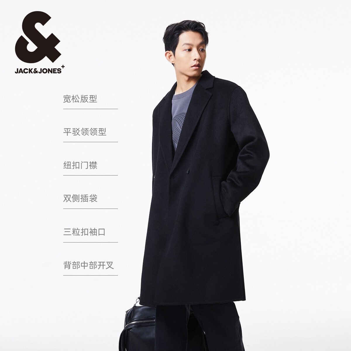 杰克琼斯男装春秋季新款潮流商务休闲纯色平驳领宽松毛呢大衣外套