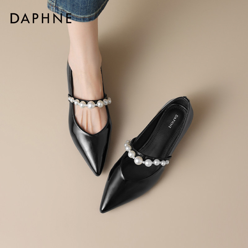 达芙妮尖头单鞋女2025新款春季温柔风鞋子低跟小皮鞋法式玛丽珍鞋