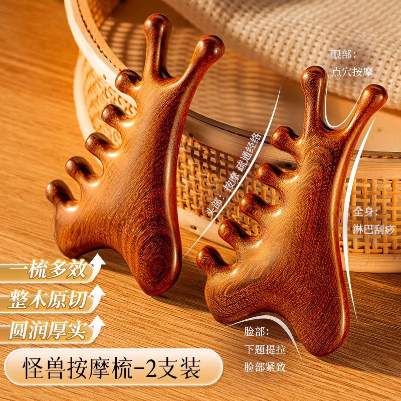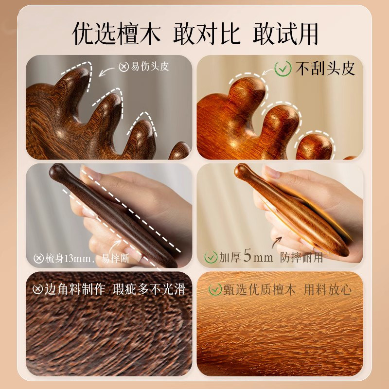 按摩梳四合一多功能头皮按摩梳头部毛囊刮痧疏通经络神器檀木梳子