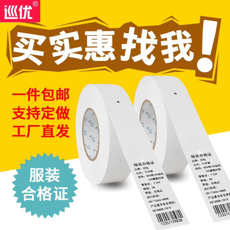 巡优空白衣服吊牌定做男装女装高档服装标签合格证订做商标设计童装窗帘鞋帽行李卡片通用卷筒打印铜版纸定制