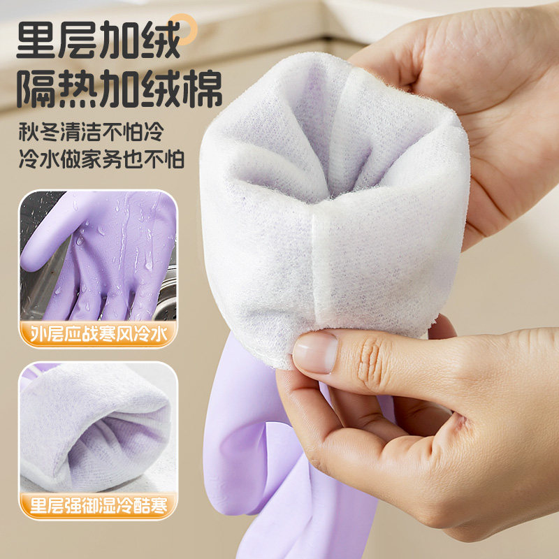 洗碗手套女加绒冬季耐用型刷洗衣皮家用加厚家务加长防滑厨房束口