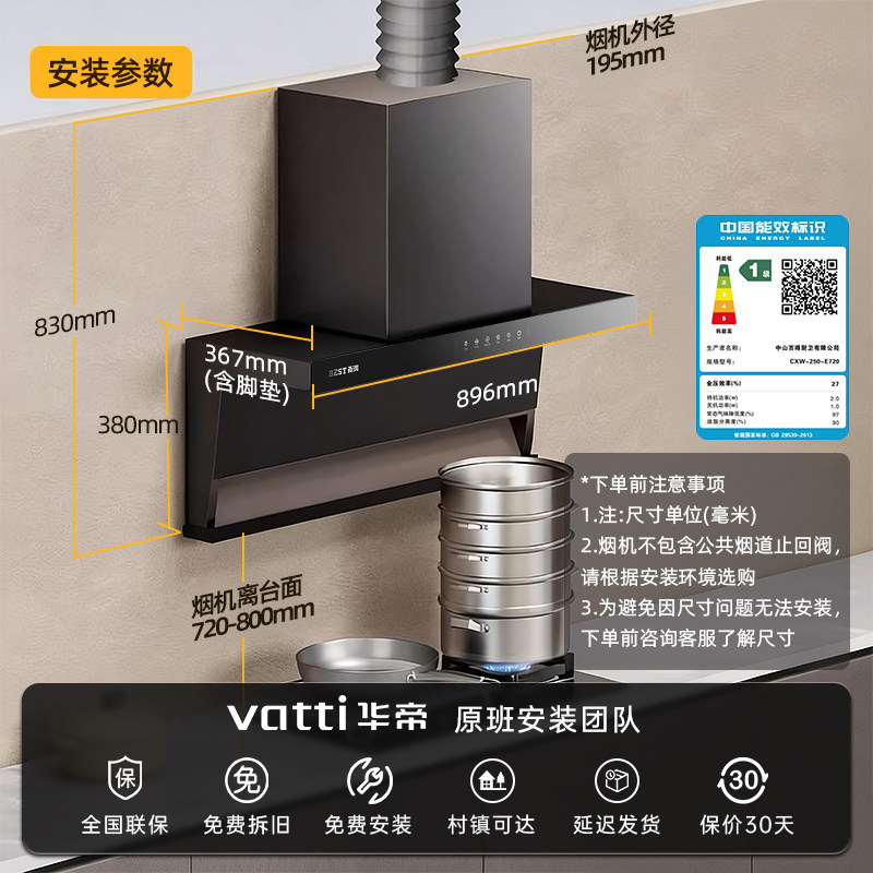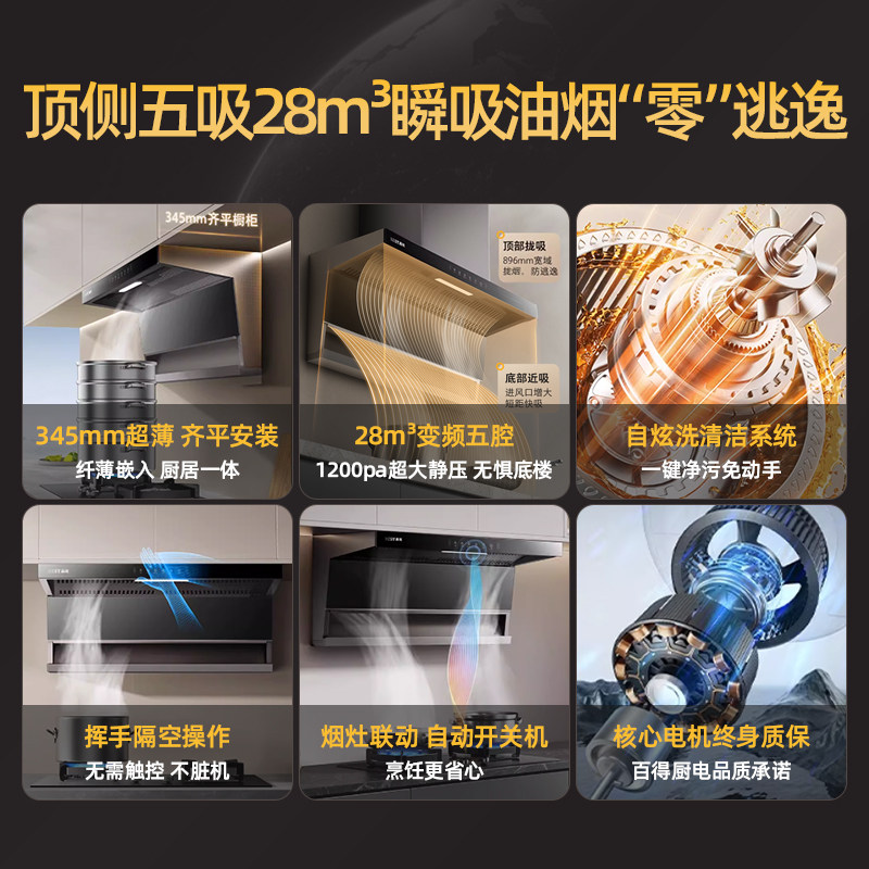 华帝百得抽油烟机家用厨房顶侧双吸变频大吸力自动清洗吸油烟机