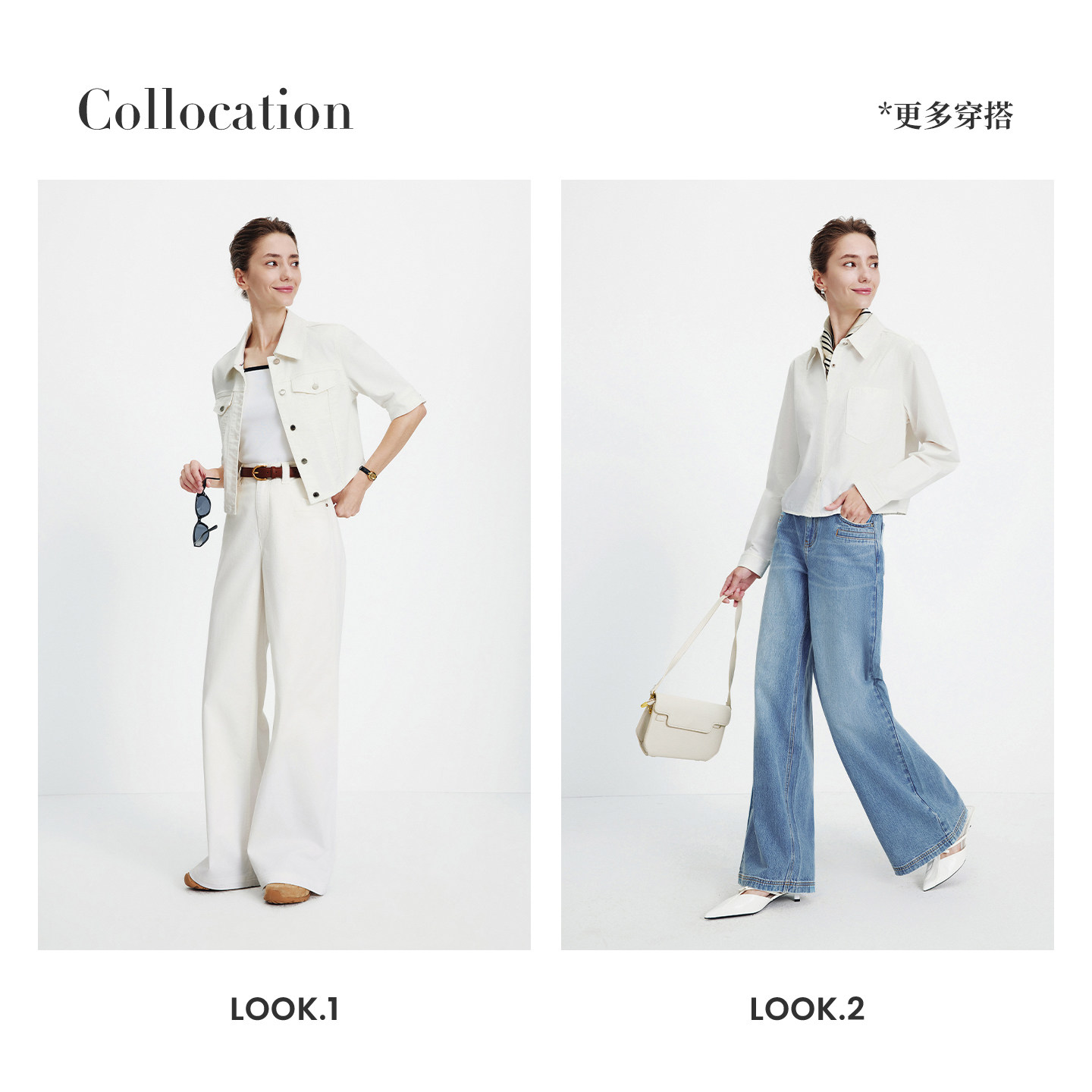 森柔牛仔|森马阔腿牛仔裤女2025秋冬白色牛仔裤简约女士高腰裤子