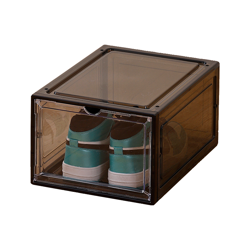 宜居轩日式磁吸式硬塑料收纳卧室鞋子鞋盒球鞋收纳盒透明灰色鞋柜