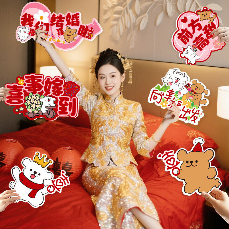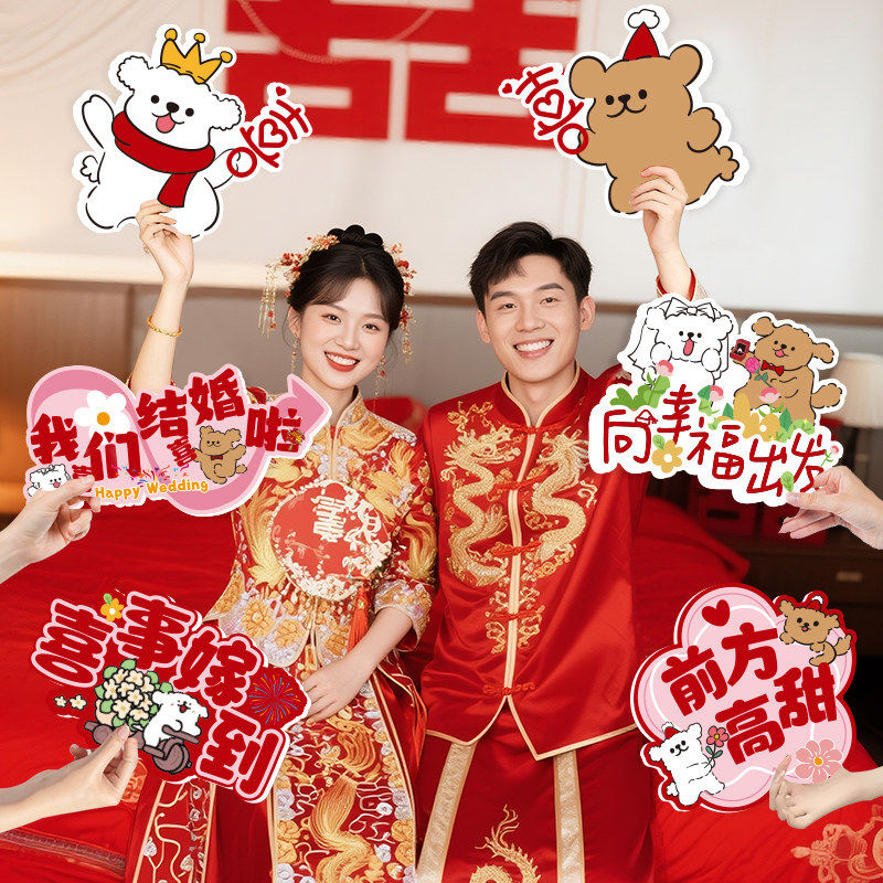 接亲拍照道具手持kt婚礼布置新娘伴娘拿喜字举牌装饰结婚迎宾路引接亲新郎新娘伴娘手持合影相框氛围感婚礼