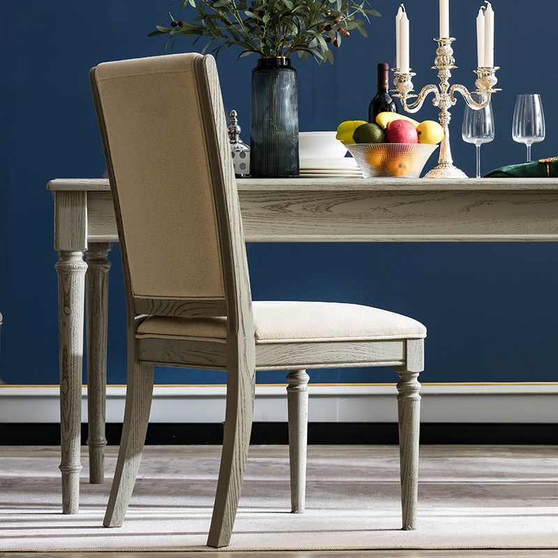 米兰软包椅 美式科技布椅子实木餐椅防污靠背轻奢灰色现代