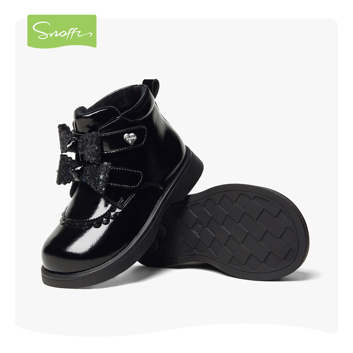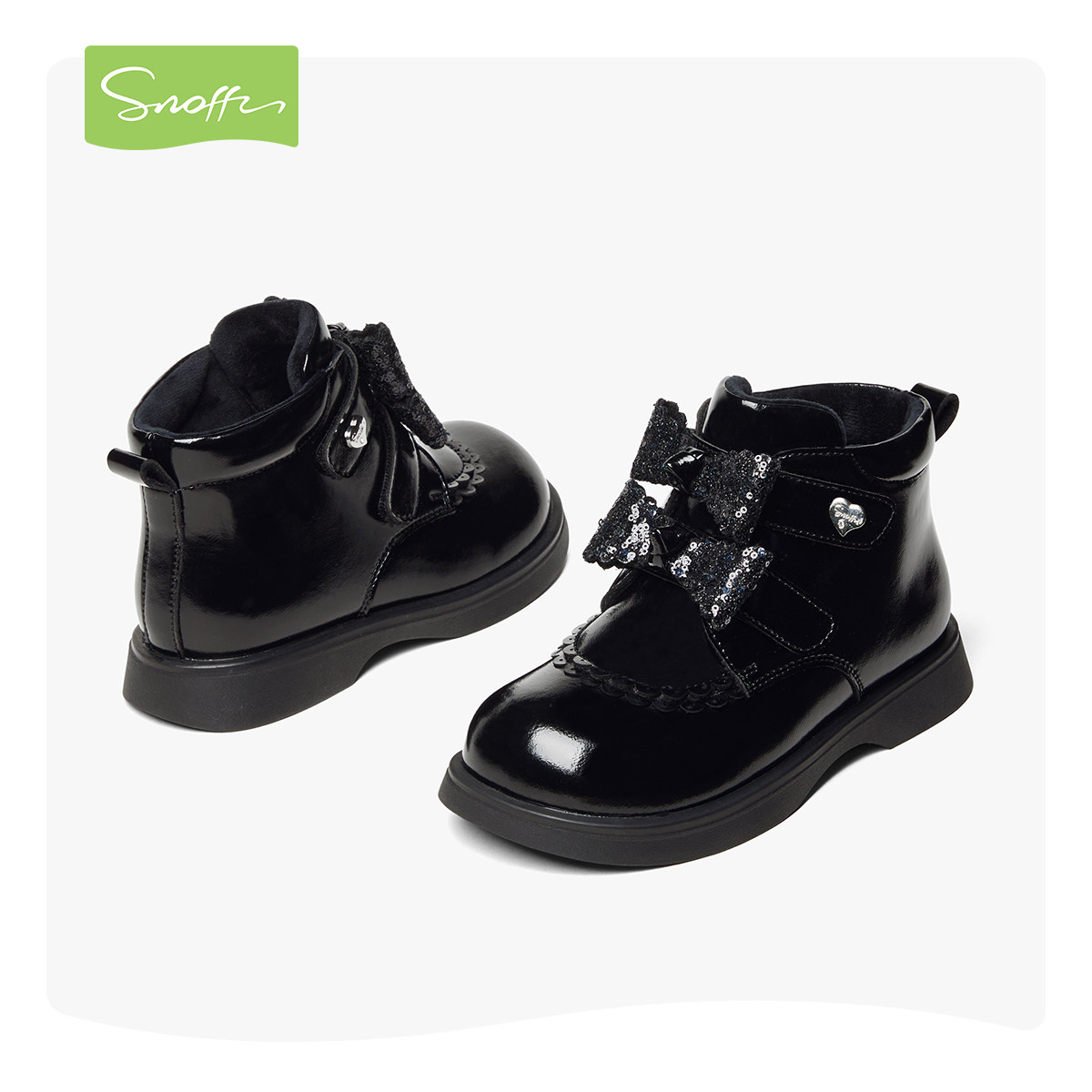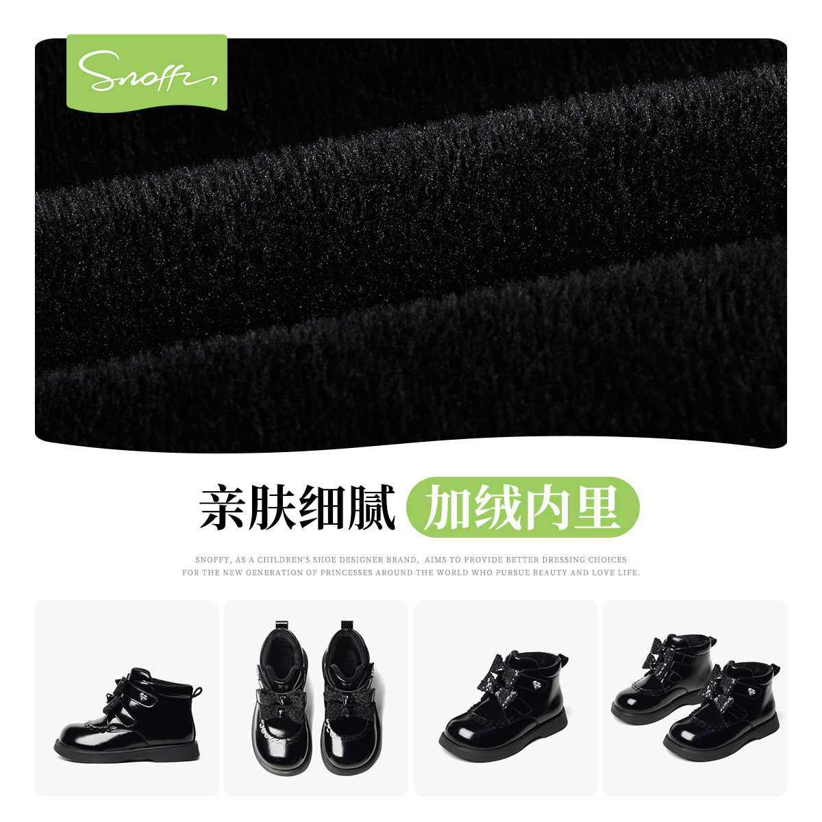 斯纳菲儿童棉鞋女童公主靴2025冬季新款黑色小公主加绒水晶短靴子