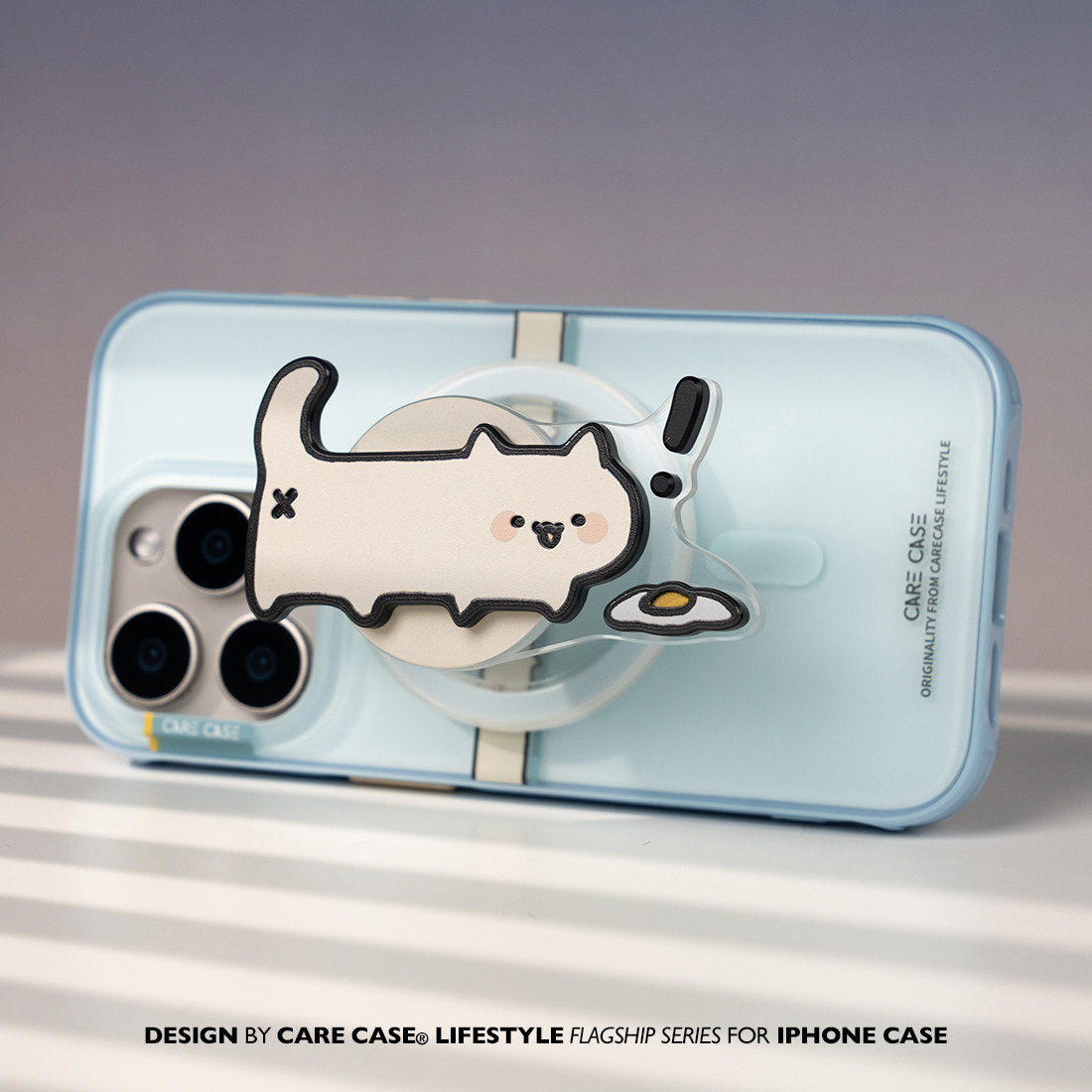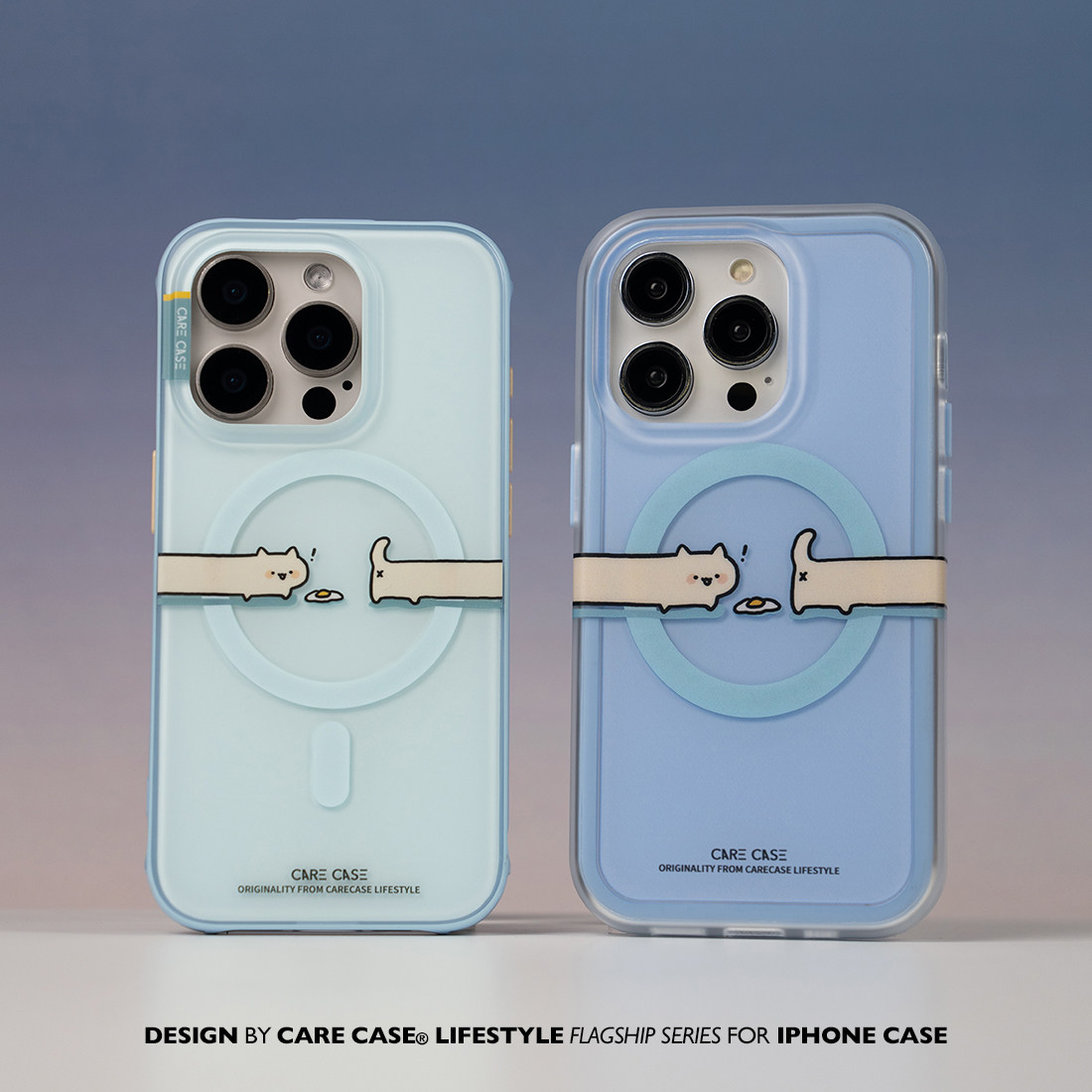 CARECASE 蓝色边框好奇觅食猫咪磁吸手机壳 适用于苹果iPhone17 16 15 14 Pro Max 原创设计 独立按键 简约