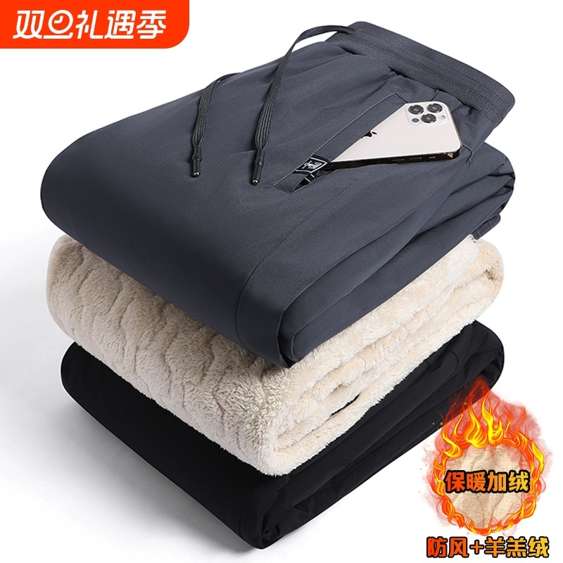 棉裤男款冬季加绒加厚男士冲锋裤东北老年人外穿羊羔绒保暖裤子男