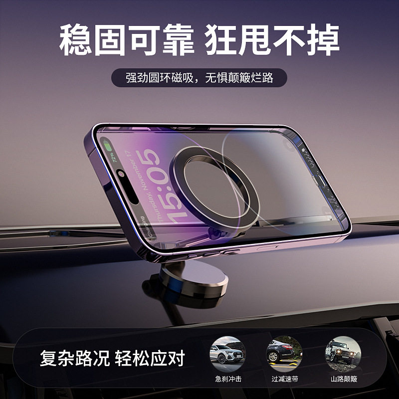 真空吸附磁吸车载手机支架2025新款吸盘车内导航手机架magsafe无线磁吸伸缩折叠便携架子墙壁通用神器