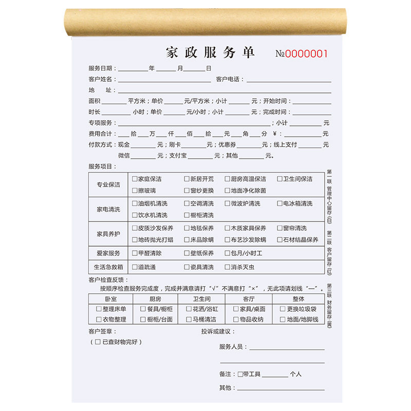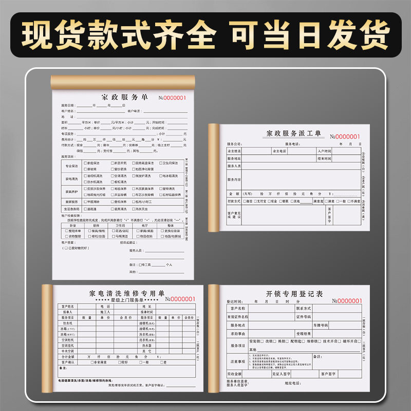 家政合同家电清洗收据保姆钟点工协议表开锁登记本家政服务派工单
