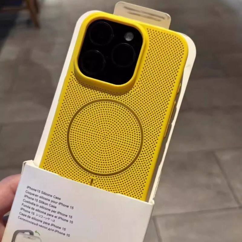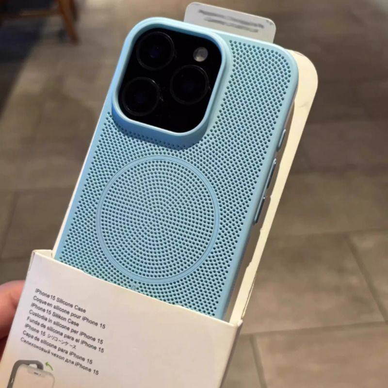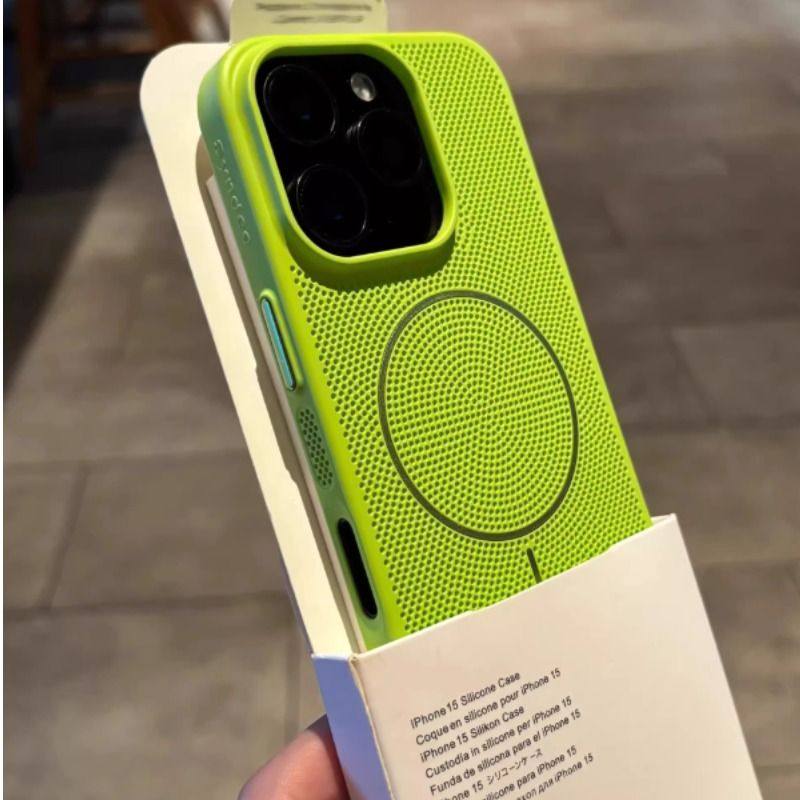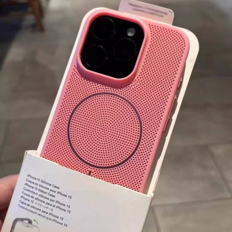 必冲呀苹果水泥手机壳钛灰夏日散热蜂窝透气网状镂空磁吸适用极简16promax15/14plus薄iPhone13男12硬11pro
