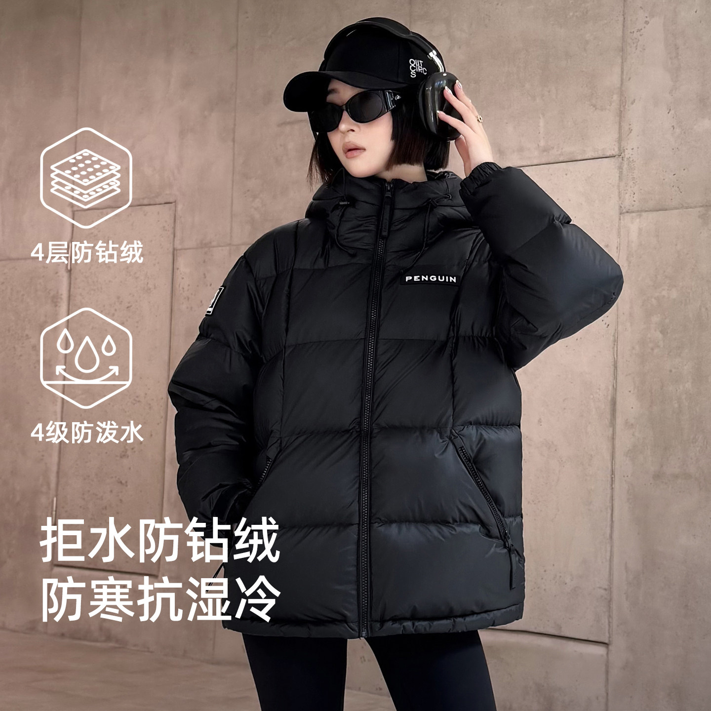 企鹅热能羽绒服女2025冬季新款情侣加厚保暖户外短款面包服外套男