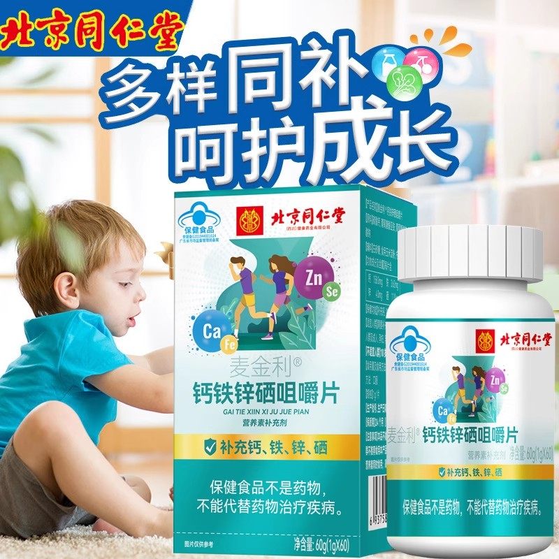 北京同仁堂钙铁锌硒咀嚼片补钙铁锌硒儿童成人缺钙铁锌官方正品