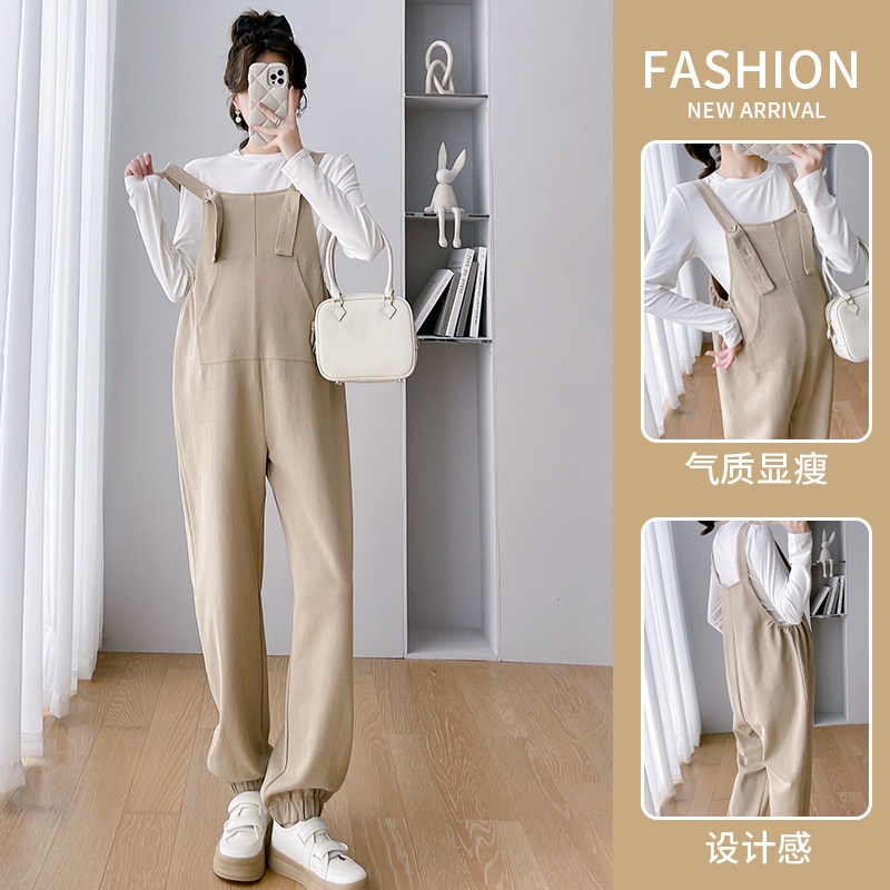 婧麒孕妇装秋套装上衣孕妇背带裤子秋装孕期穿搭洋气新款孕妇套装