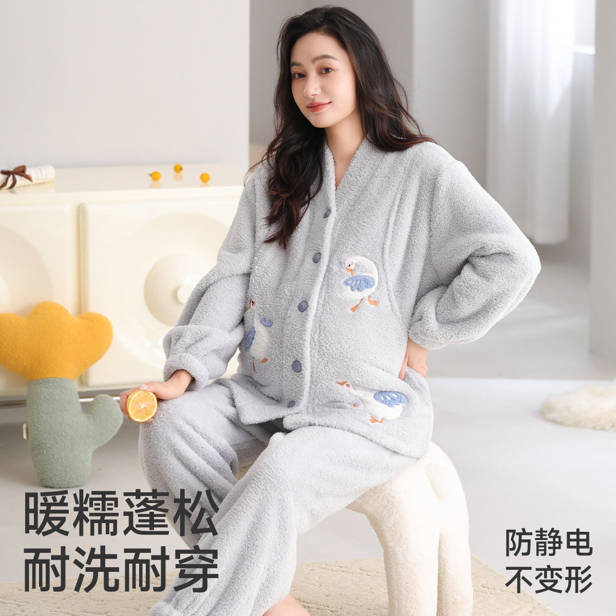 纯棉月子服产后冬加厚款产妇孕期哺乳孕妇睡衣秋冬季喂奶家居服