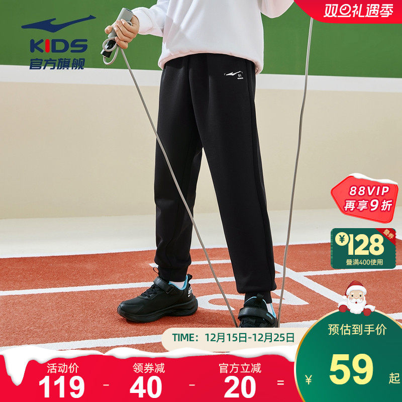 鸿星尔克童装男童针织卫裤秋季新款学生运动裤女童中大童长裤子