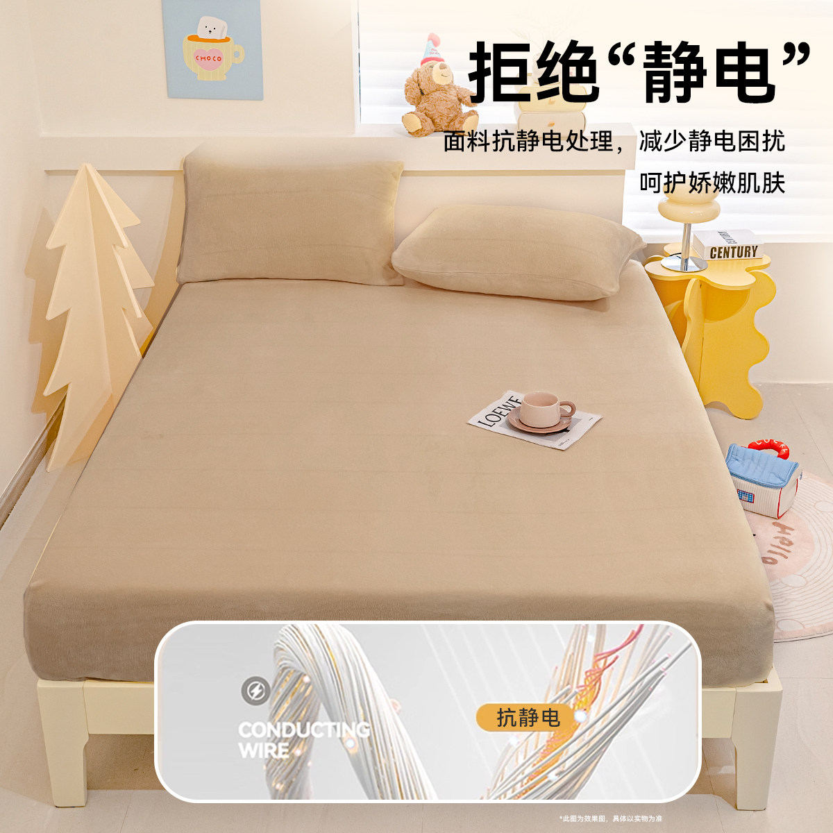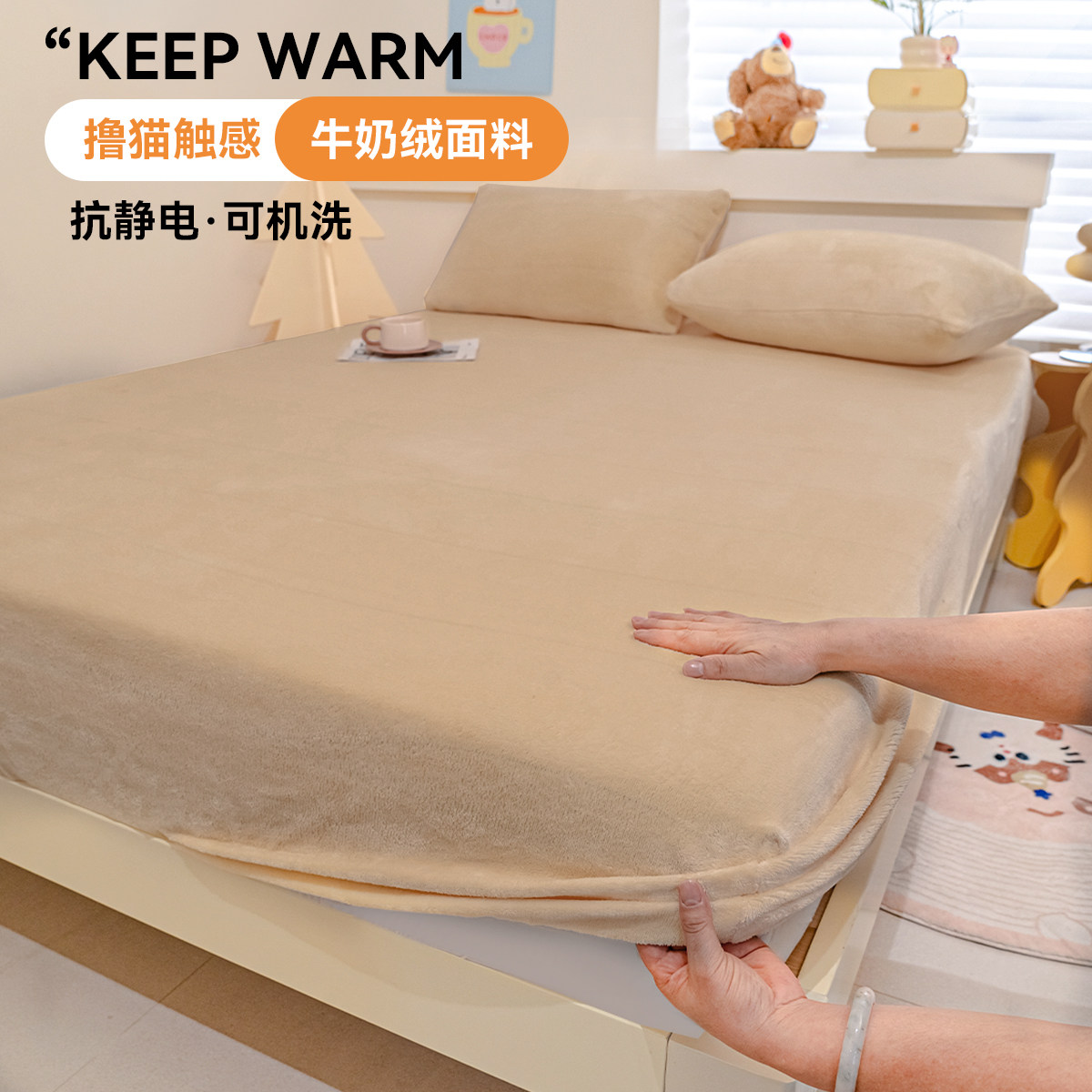秋冬床笠学生宿舍单人床垫套加厚保暖三件套全包牛奶绒防滑松紧带
