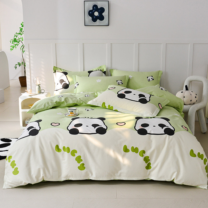 无印良品全棉四件套学生宿舍纯棉卡通儿童被套床单三件套床上用品