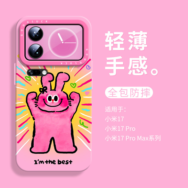 创意自信兔兔适用小米17promax手机壳小米17pro液态软壳小米17硅胶保护套XIAOMI男女17promax带挂绳可爱